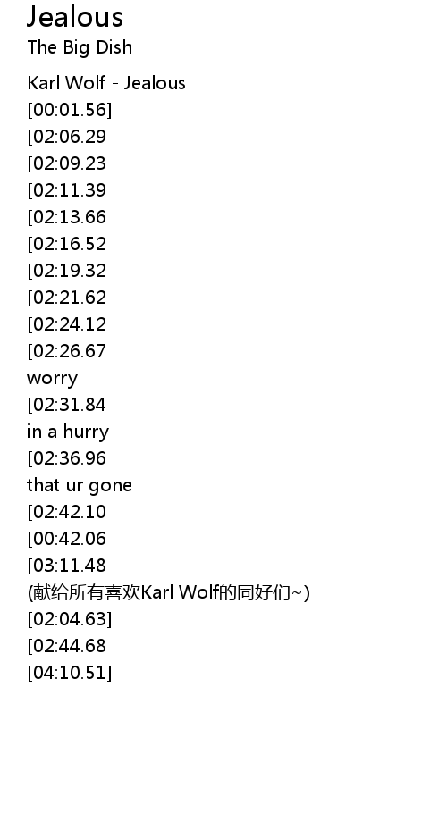 | [00:00.76] | Karl Wolf Jealous |