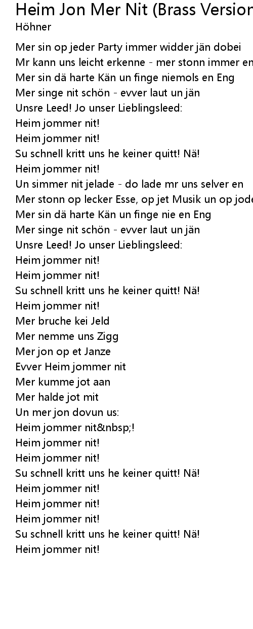 | Heim jommer nit nbsp! | |