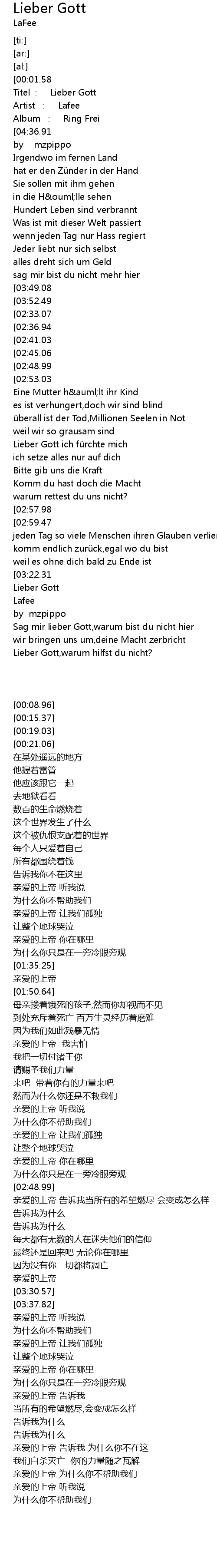 | [02:06.50] | Lieber Gott ich fü rchte mich |