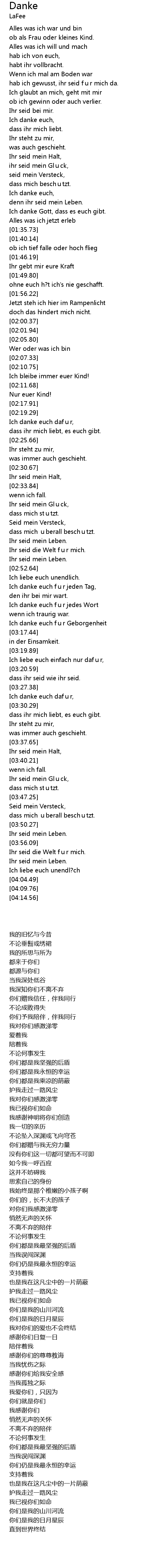 | [03:16.31] | Ich danke euch fur Geborgenheit |