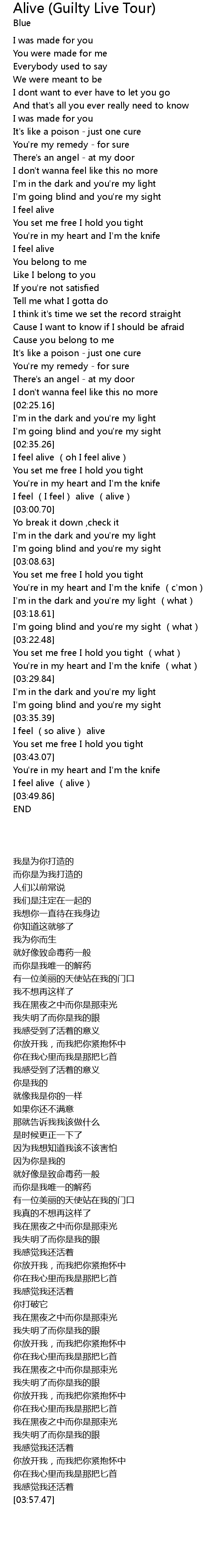 | [02:37.36] | I feel alive (oh I feel alive) |