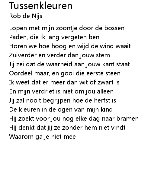 | Song | Tussenkleuren |
