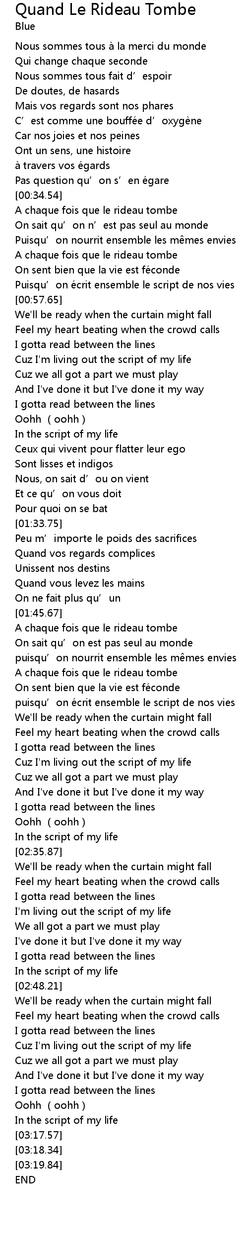 | [01:58.89] | A chaque fois que le rideau tombe |
