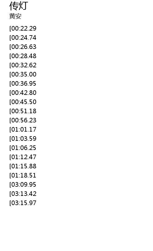 | [02:30.69][00:56.23] | 谁来燃起一盏灯 |