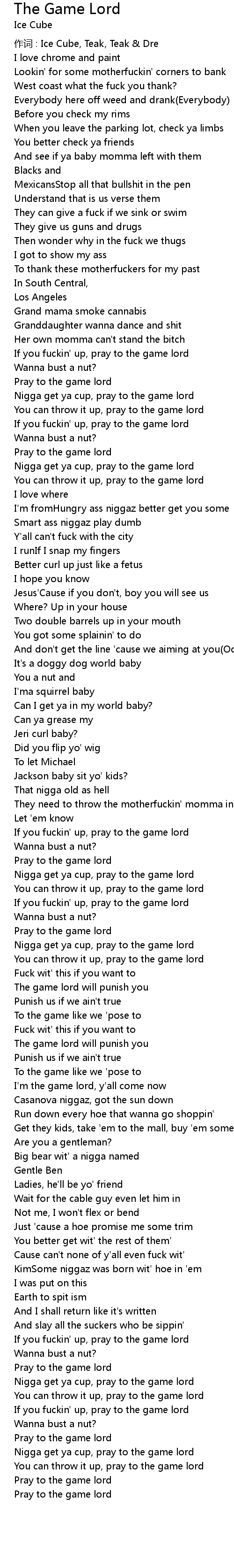 | 作词 : Ice Cube, Teak, Teak & Dre | |