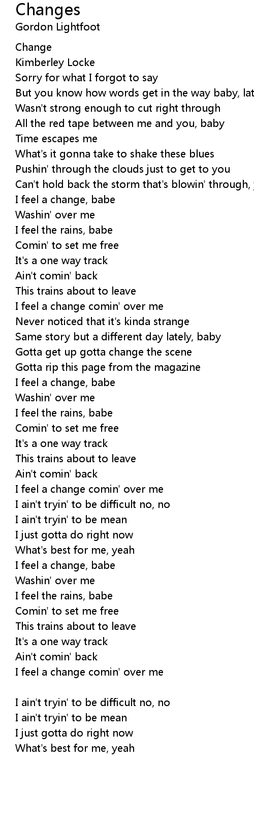 I feel a change comin' over me |