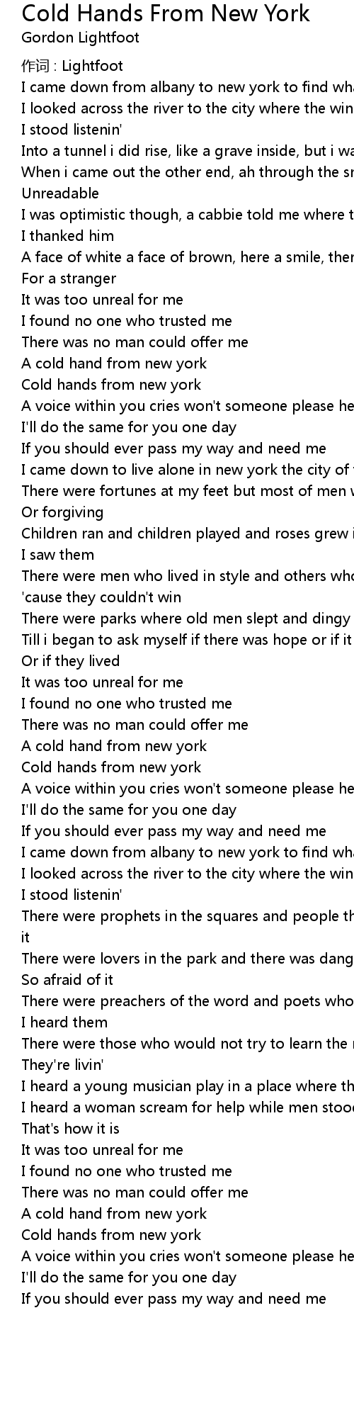 | Cold hands from new york | |