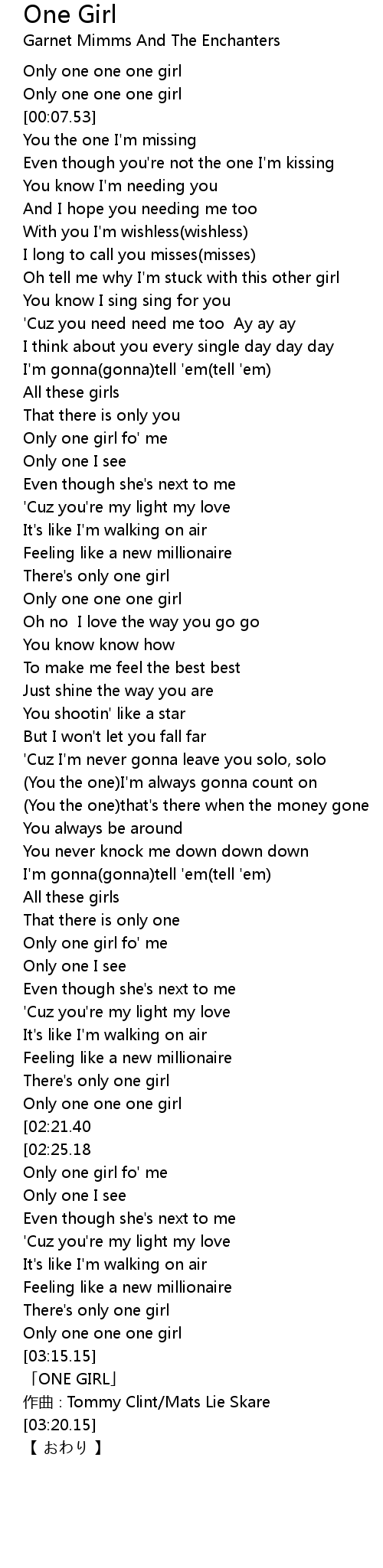 | [00:21.26] | Oh tell me why I' m stuck with this other girl |