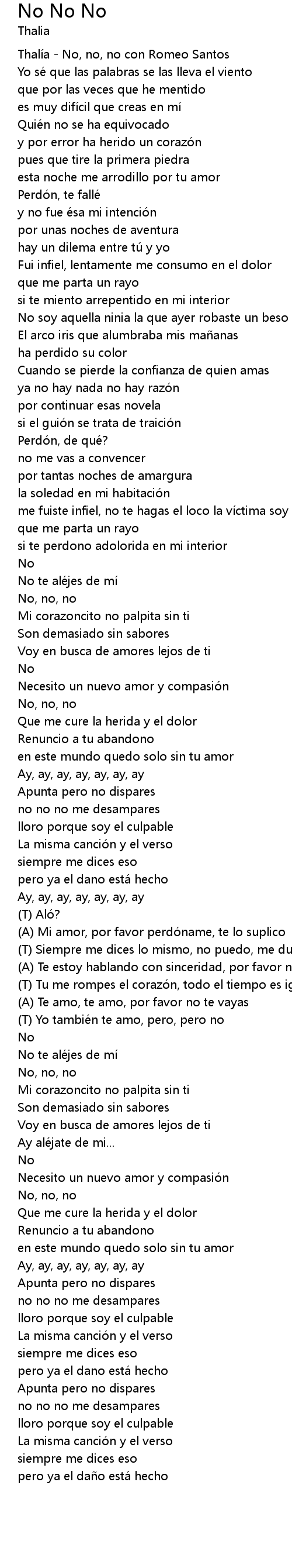 | [00:01.33] | Thalía - No, no, no con Romeo Santos |