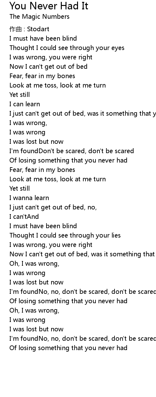 | Of losing something that you never had | |