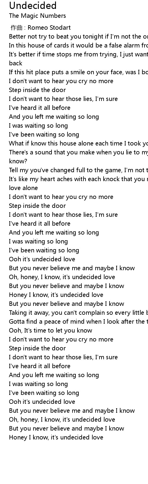 | [03:59.641] | Ooh it' s undecided love |