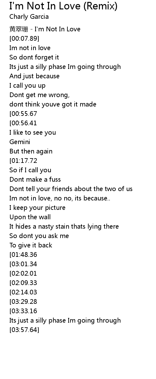 | [00:01.12] | huáng cuì shān I' m Not In Love |