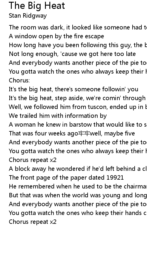 | It' s the big heat, there' s someone followin' you | |