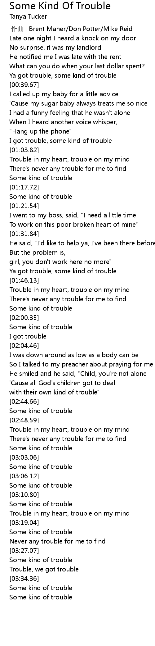 | [03:04.38] | Some kind of trouble |