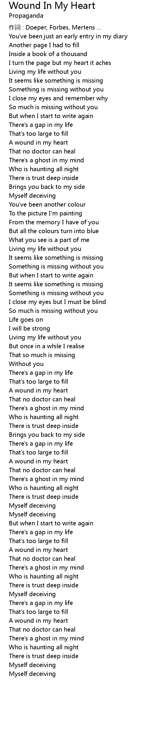 | Song | Wound In My Heart |