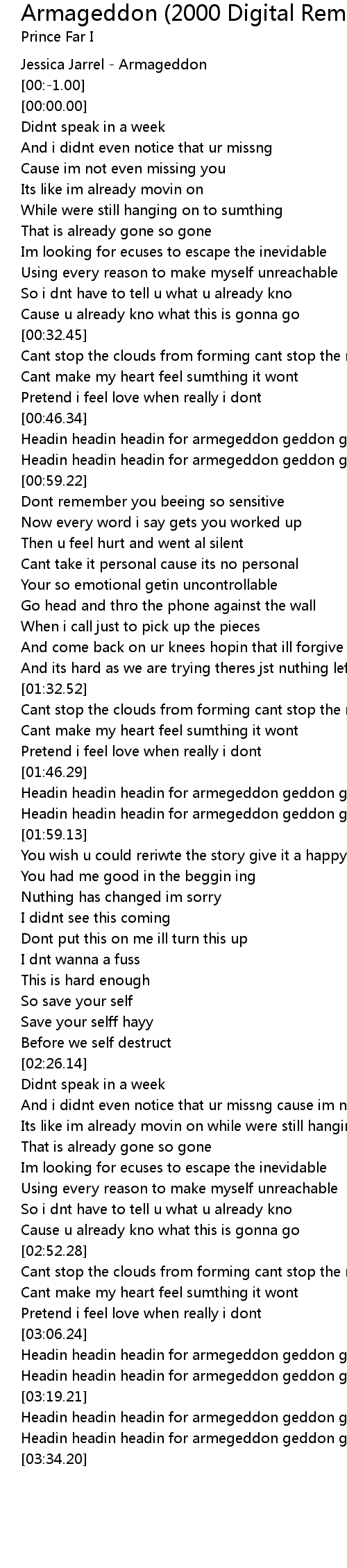 Headin headin headin for armegeddon geddon geddon |