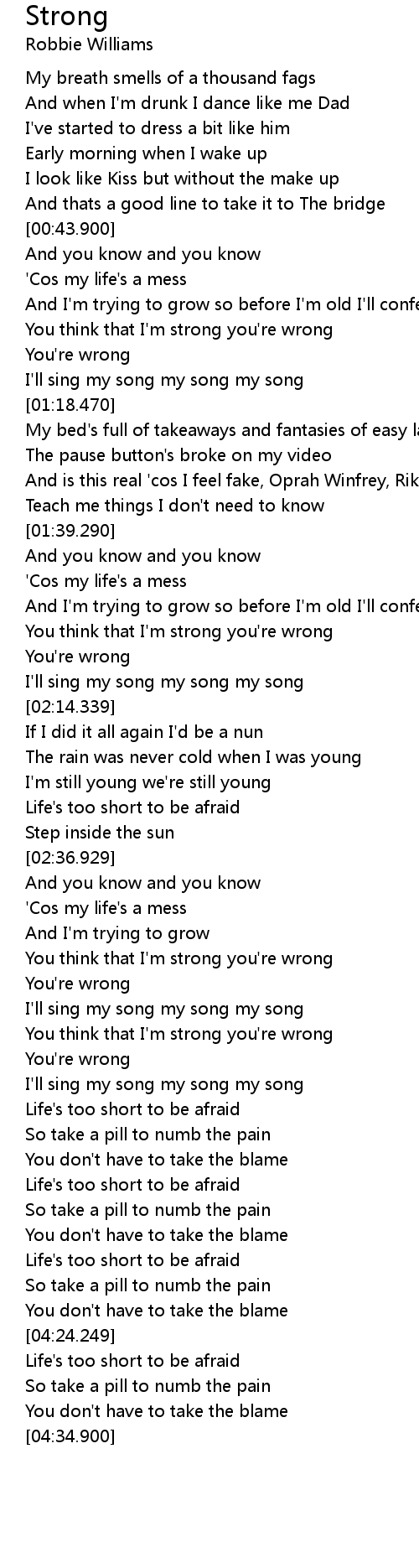 | [00:57.20] | You think that I' m strong you' re wrong |