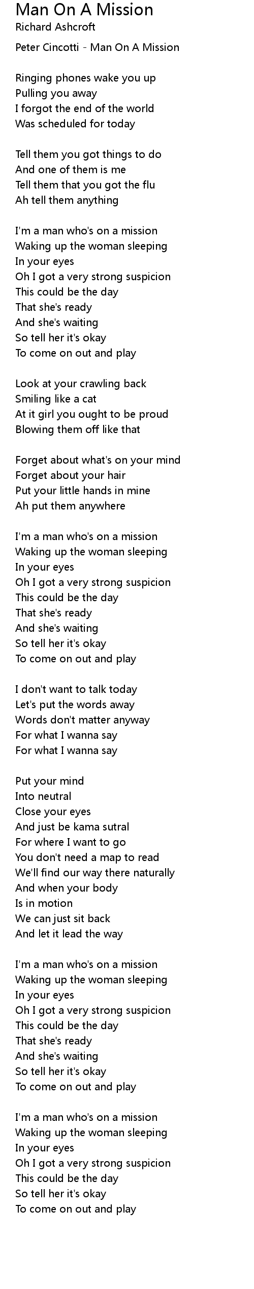 I'm a man who's on a mission |