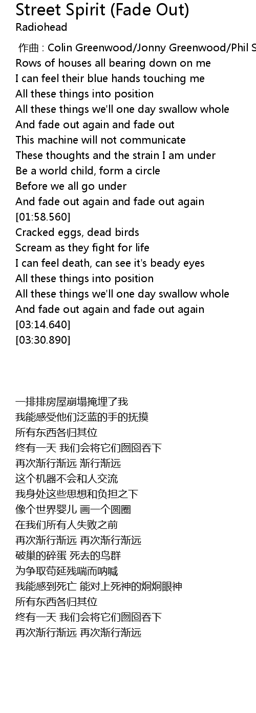 | [00:00.00] | 作曲 : Colin Greenwood/Jonny Greenwood/Phil Selway/Thom Yorke |