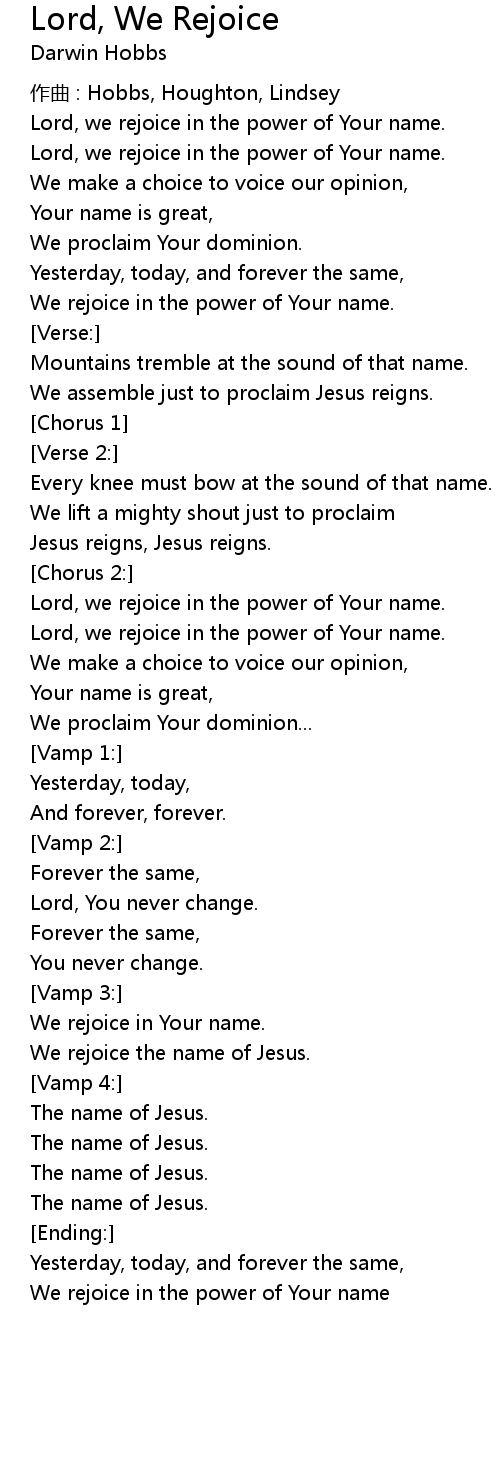 | We rejoice the name of Jesus. | |