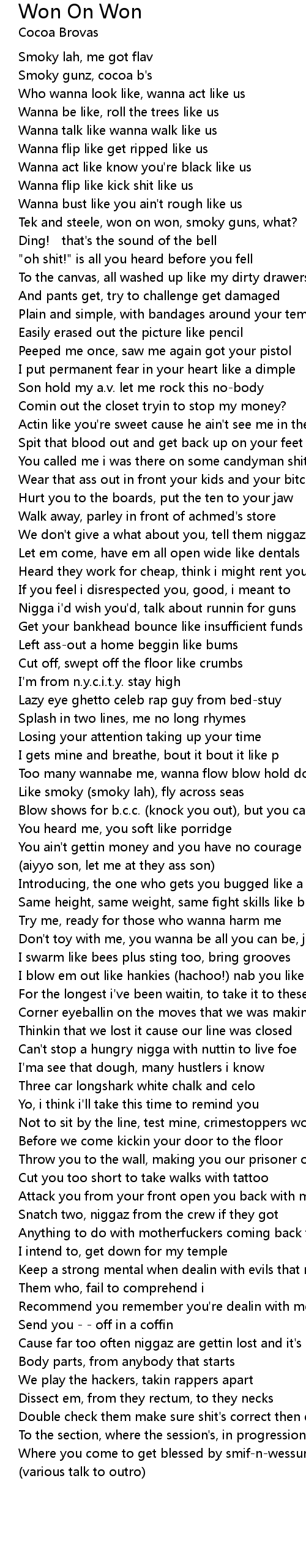 | Song | Won On Won |