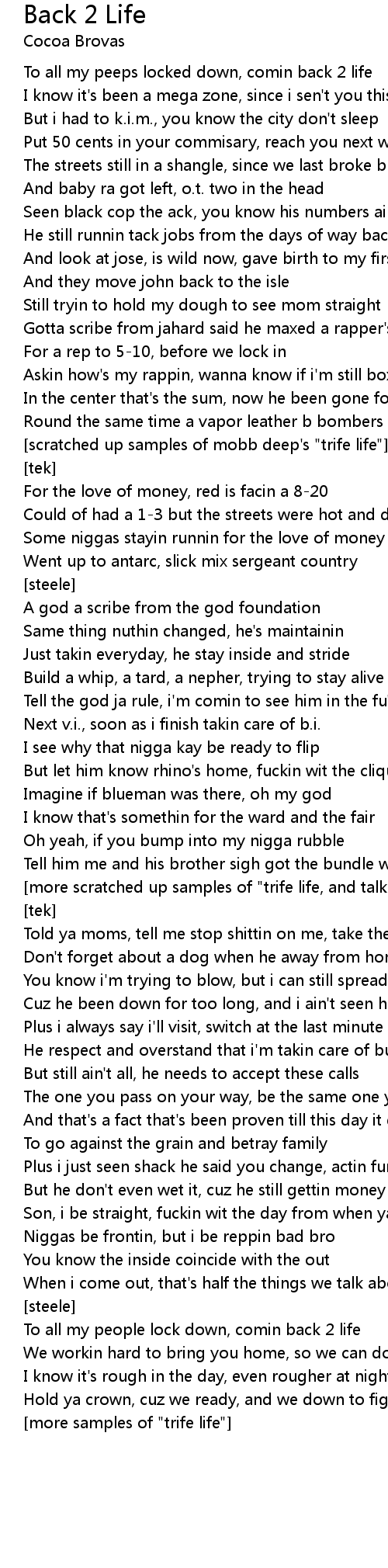 [more scratched up samples of "trife life, and talking] |