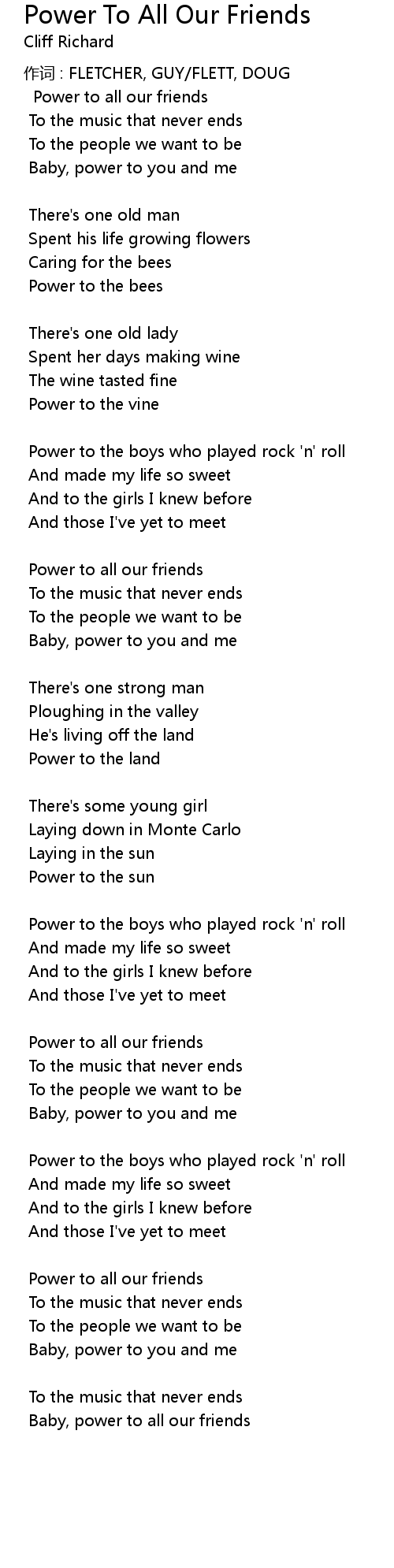| Baby, power to all our friends |