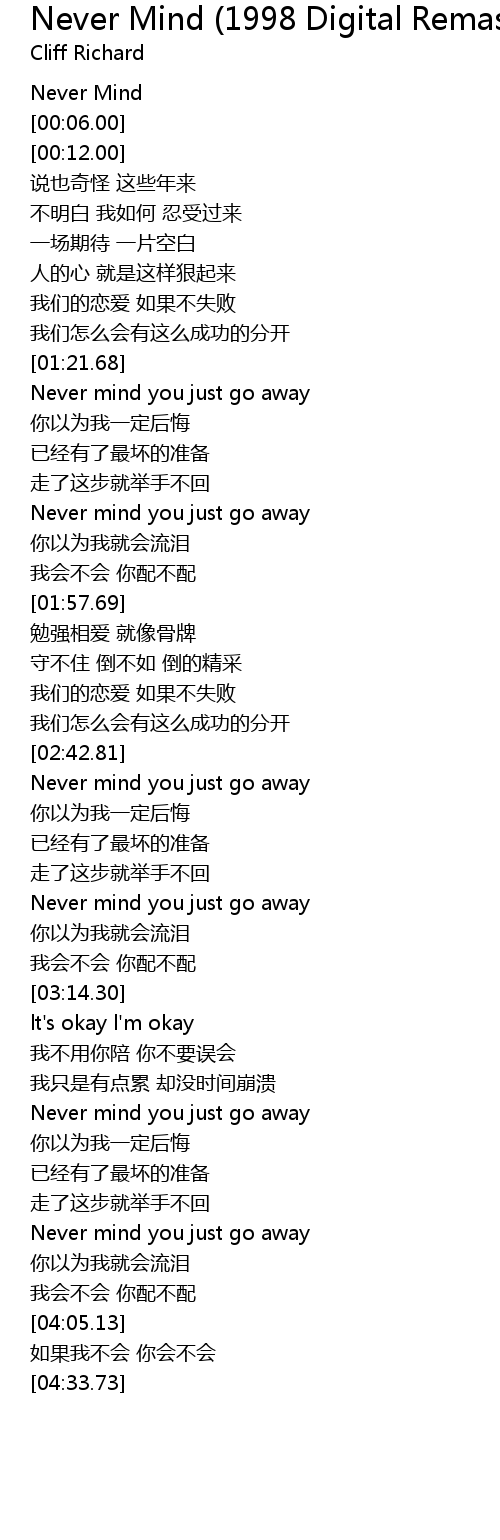 | [03:47.36] | Never mind you just go away |