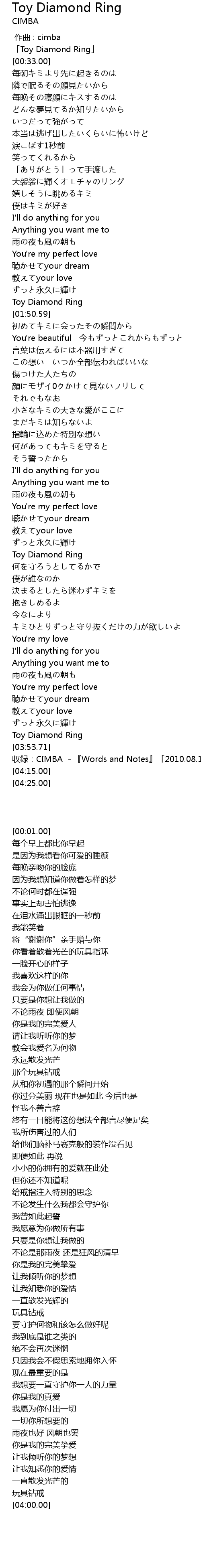 | [00:01.00] | 「Toy Diamond Ring」 |