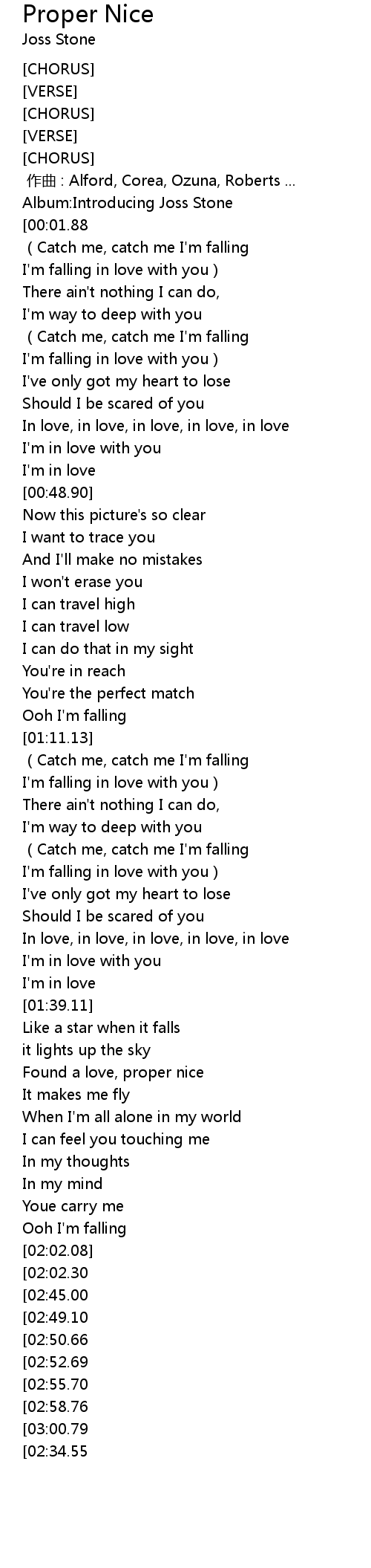 | [02:42.75][02:02.30][03:03.04] | Catch me, catch me I' m falling |