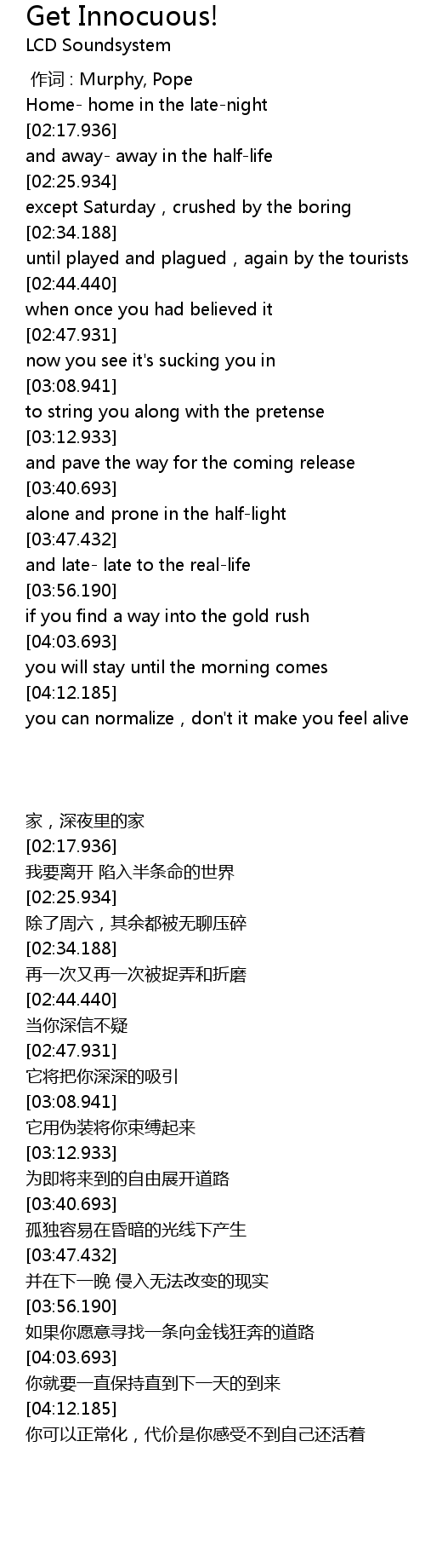 | [00:00.000] | zuò cí : Murphy, Pope |
