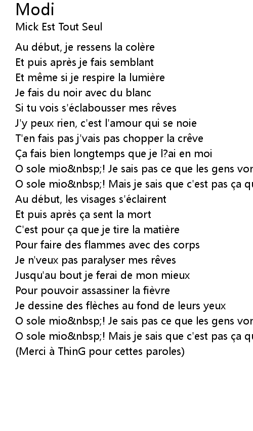 | O sole mio nbsp! Mais je sais que c' est pas a qui me tuera | |