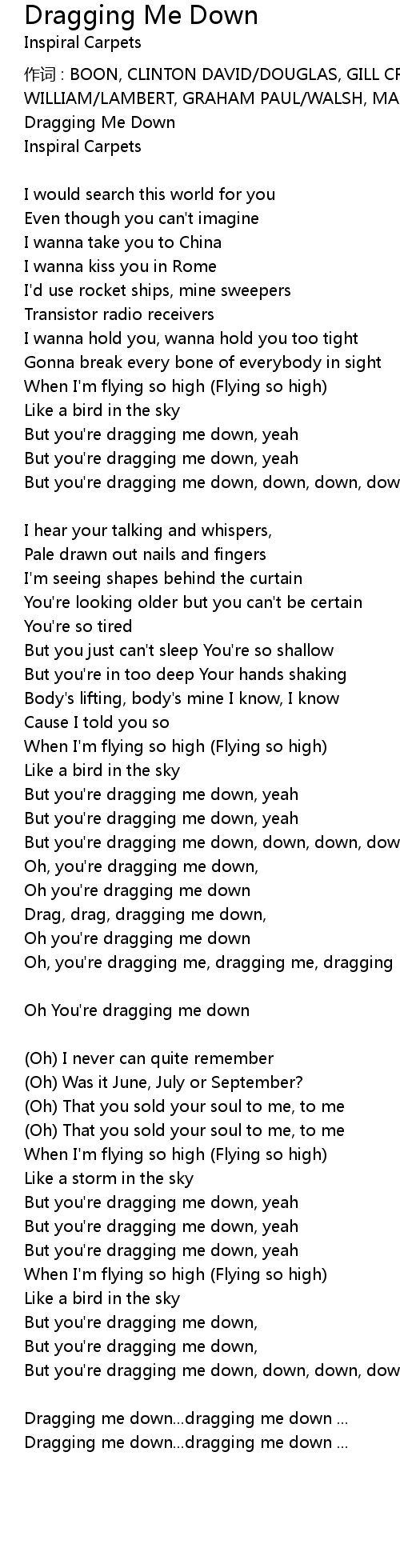 | Oh You' re dragging me down | |