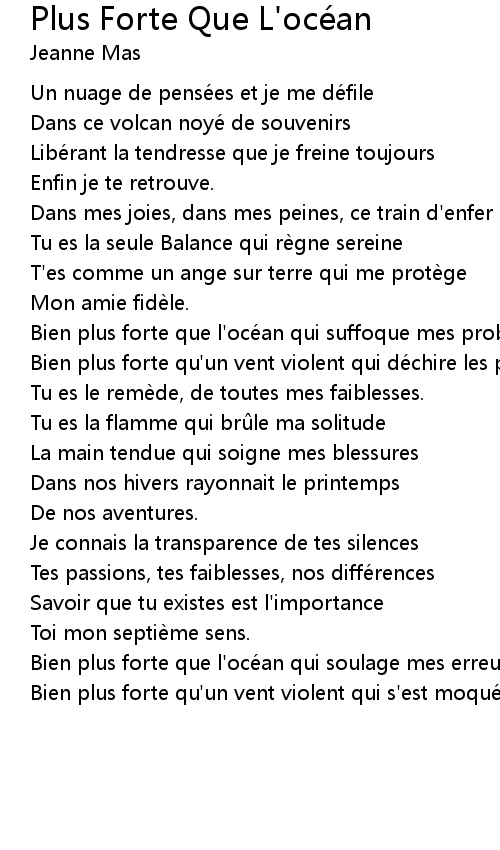 | Bien plus forte que l' océ an qui suffoque mes problè mes | |