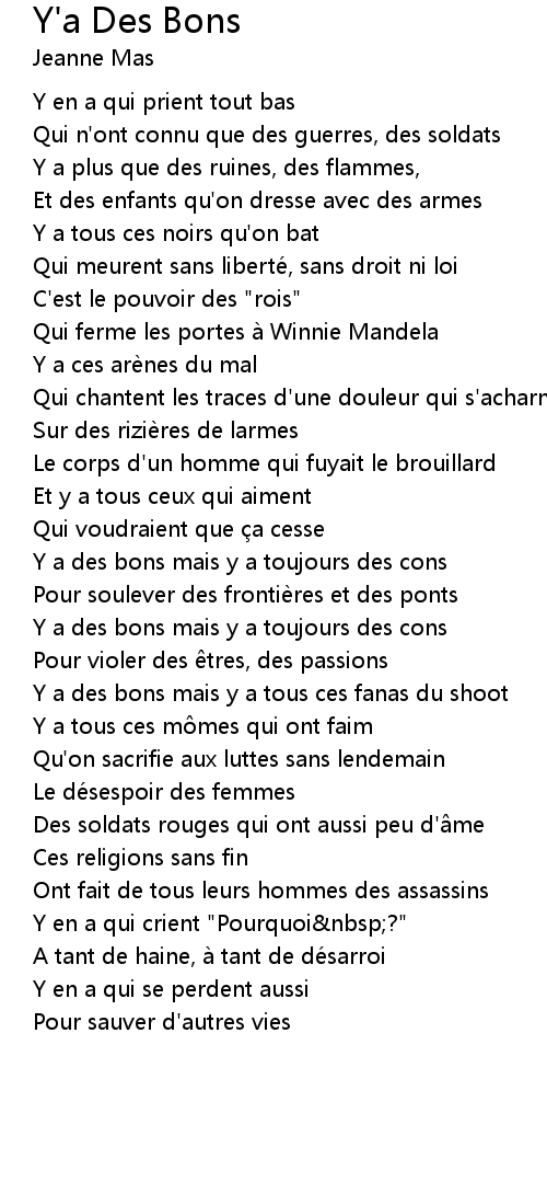 | Song | Y'a Des Bons |