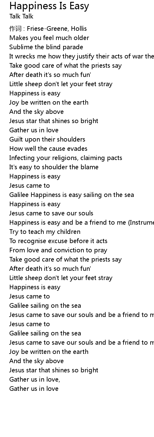 | Song | Happiness Is Easy |