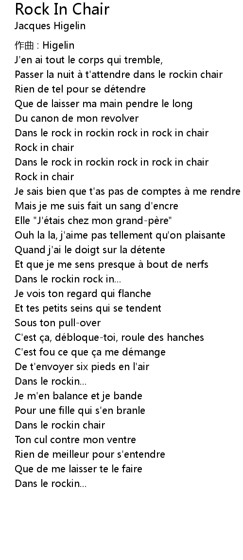 | Dans le rock in rockin rock in rock in chair | |
