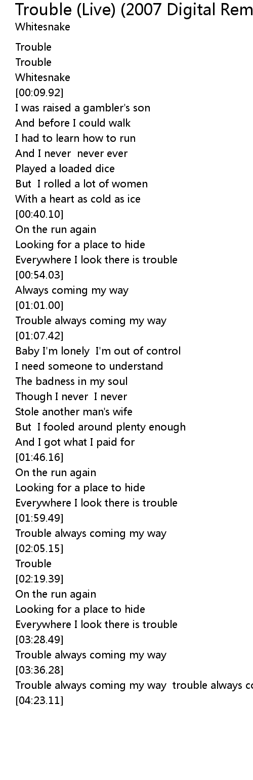 Trouble (Live) (2007 Digital Remaster) Lyrics