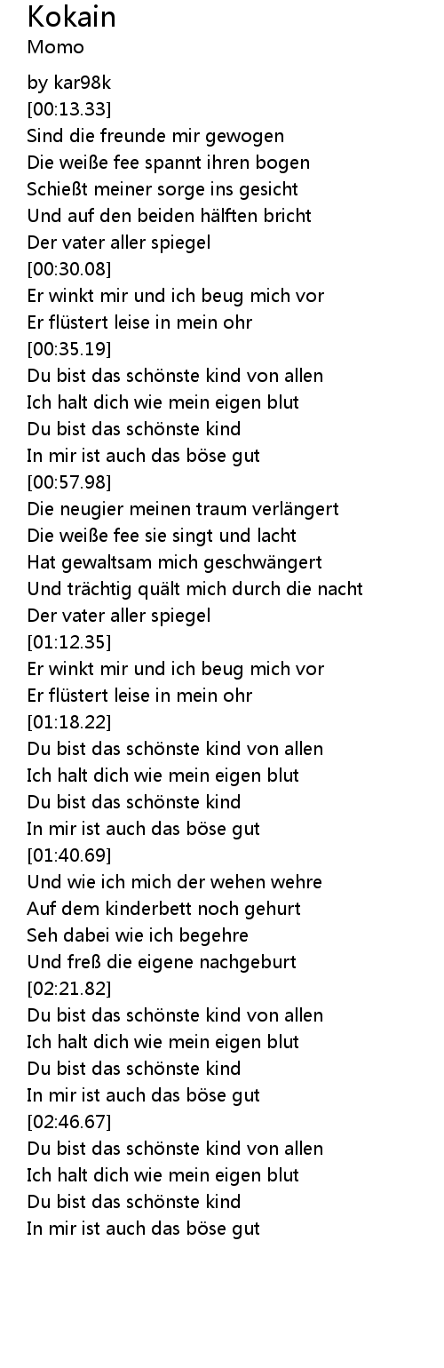 | [00:44.39] | Ich halt dich wie mein eigen blut |