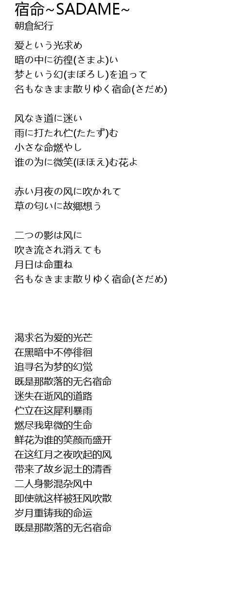 su ming SADAME Lyrics