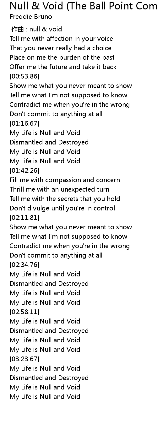 | Song | Null & Void (The Ball Point Composer Album Version) |