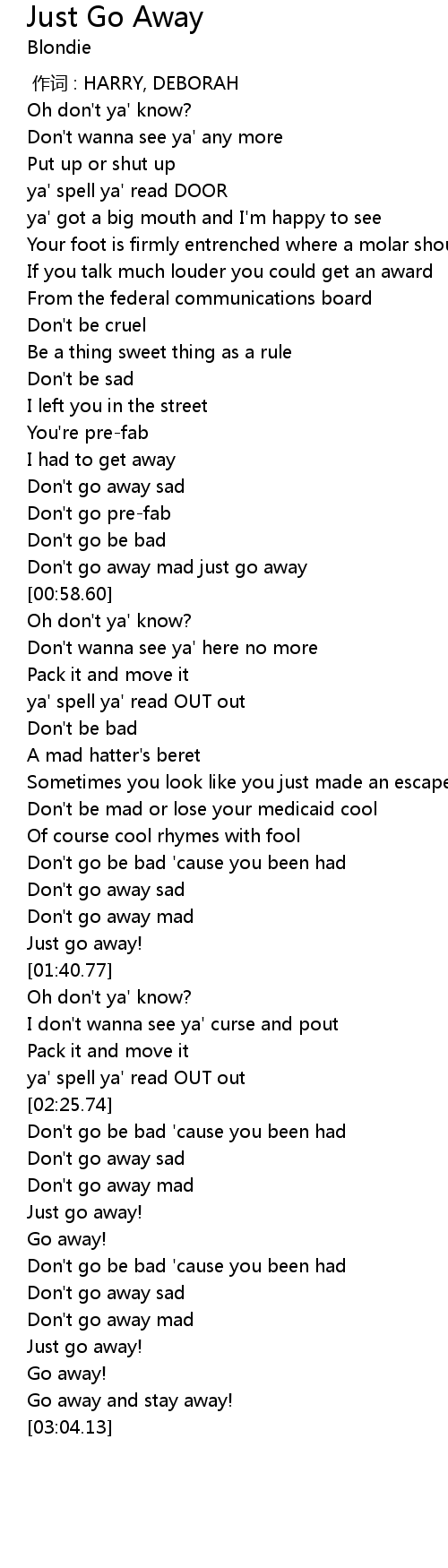 | [00:53.26] | Don' t go away mad just go away |