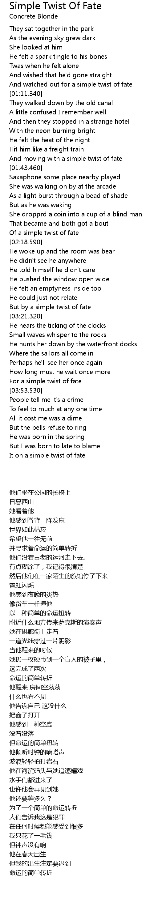 And watched out for a simple twist of fate |