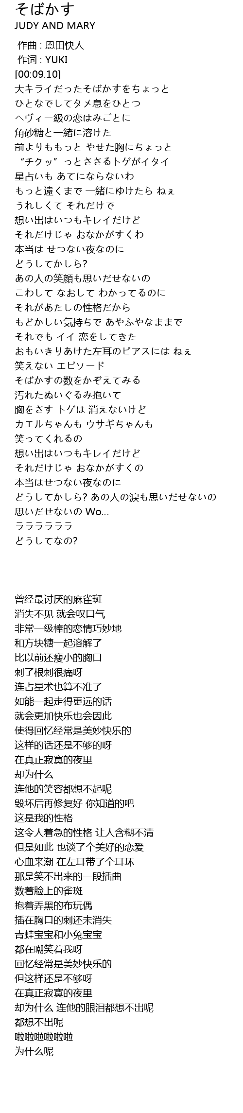 | [00:16.59] | 大キライだったそばかすをちょっと |
