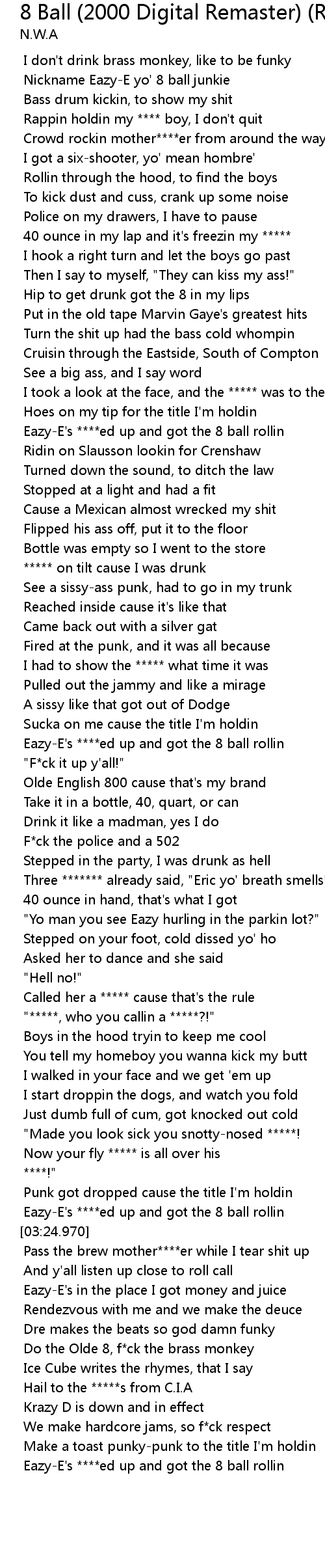 Eazy-E's ****ed up and got the 8 ball rollin |
