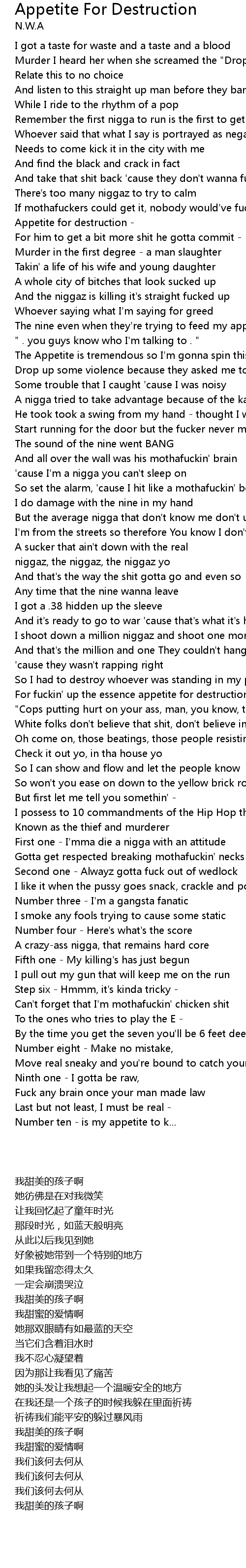 The nine even when they're trying to feed my appetite for destruction |