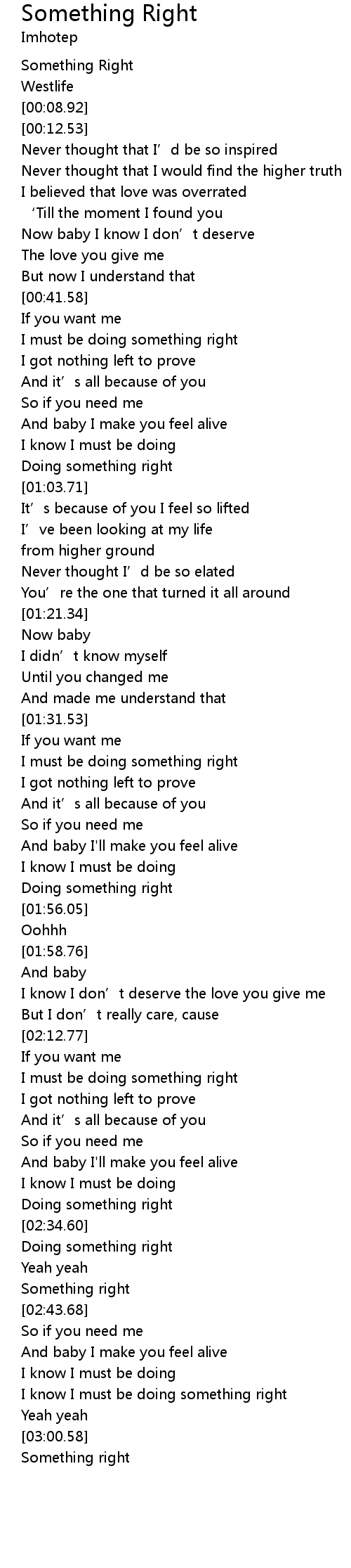 | [03:02.66] | Something right |