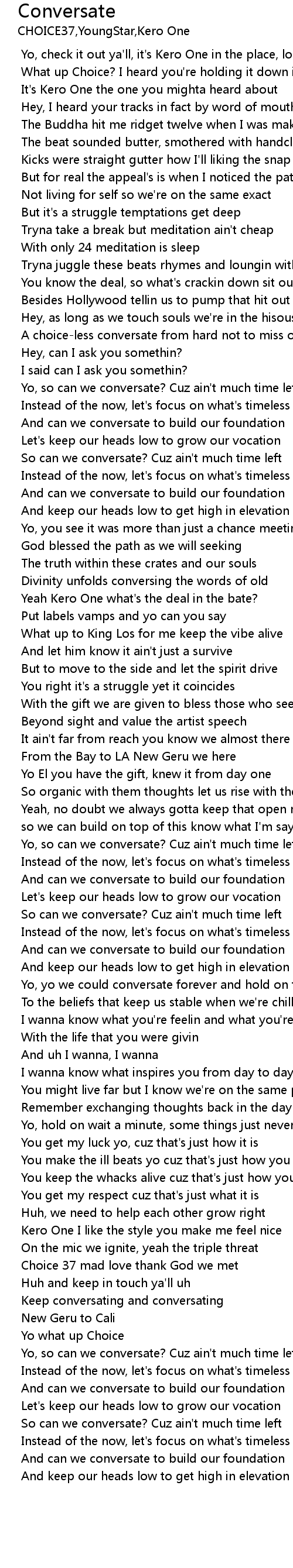 | [02:20.132] | Yo, so can we conversate? Cuz ain't much time left |