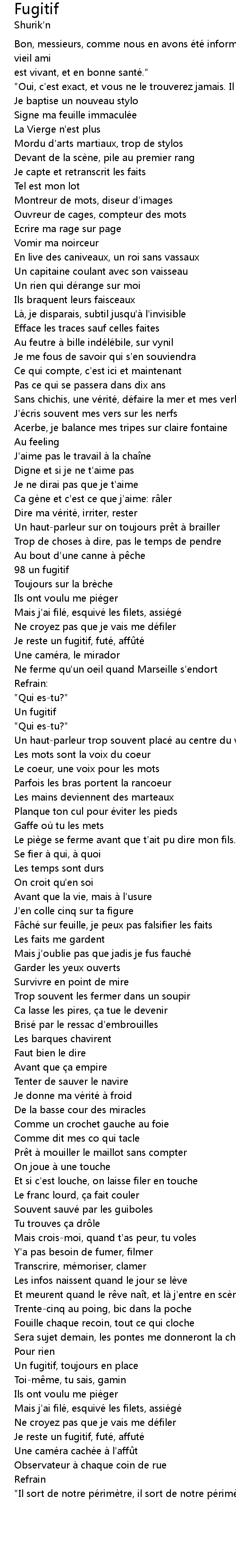 | Mais j' ai filé, esquivé les filets, assié gé | |