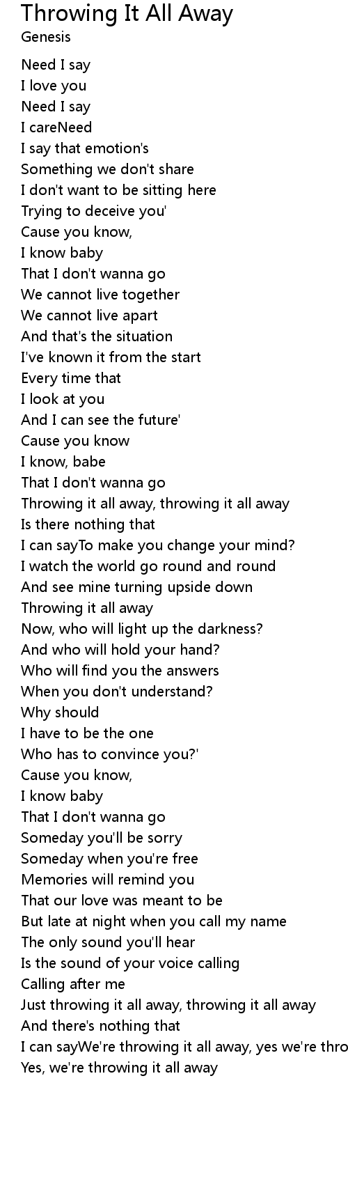 Throwing it all away, throwing it all away |